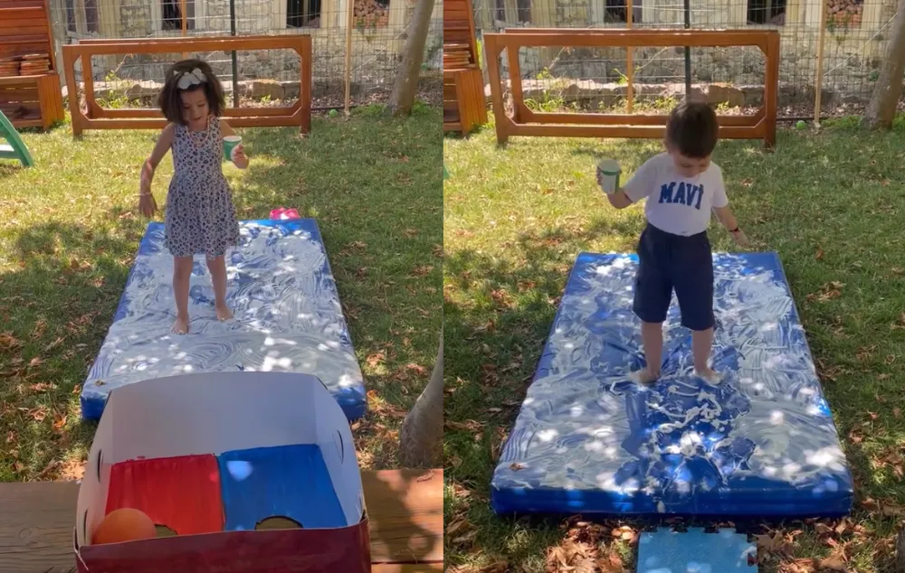 Çocukların fiziksel, bilişsel ve sosyal-duygusal gelişimlerini desteklemek amacıyla hazırlanan etkinlikte; kaygan zemin üzerinde yürüyerek denge becerilerini geliştiren minikler, renkli toplarla oynarken eşleştirme ve görsel algı yetilerini pekiştirdi.