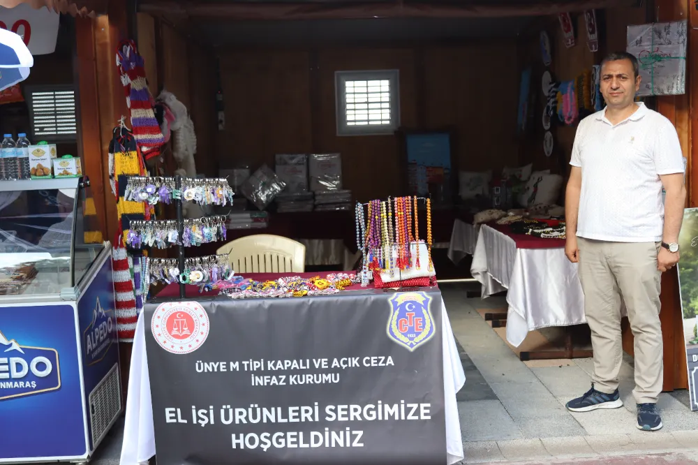 Festival evlerinde dikkat çeken bir diğer stant ise Ünye M Tipi Kapalı Ceza İnfaz Kurumu’na ait. İnfaz Koruma Memuru İbrahim Bekdemir, burada sergilenen ürünlerin tutuklu ve hükümlüler tarafından yapıldığını ifade ederek şunları söyledi: