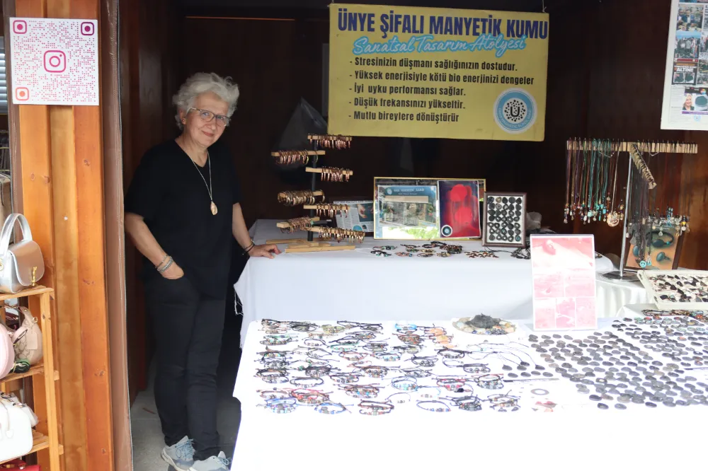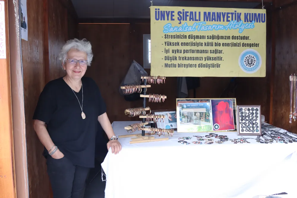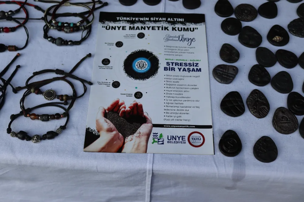 Festivalde en dikkat çeken ürünlerden biri de Ünye’nin dünyaca ünlü manyetik kumundan yapılan takılar.