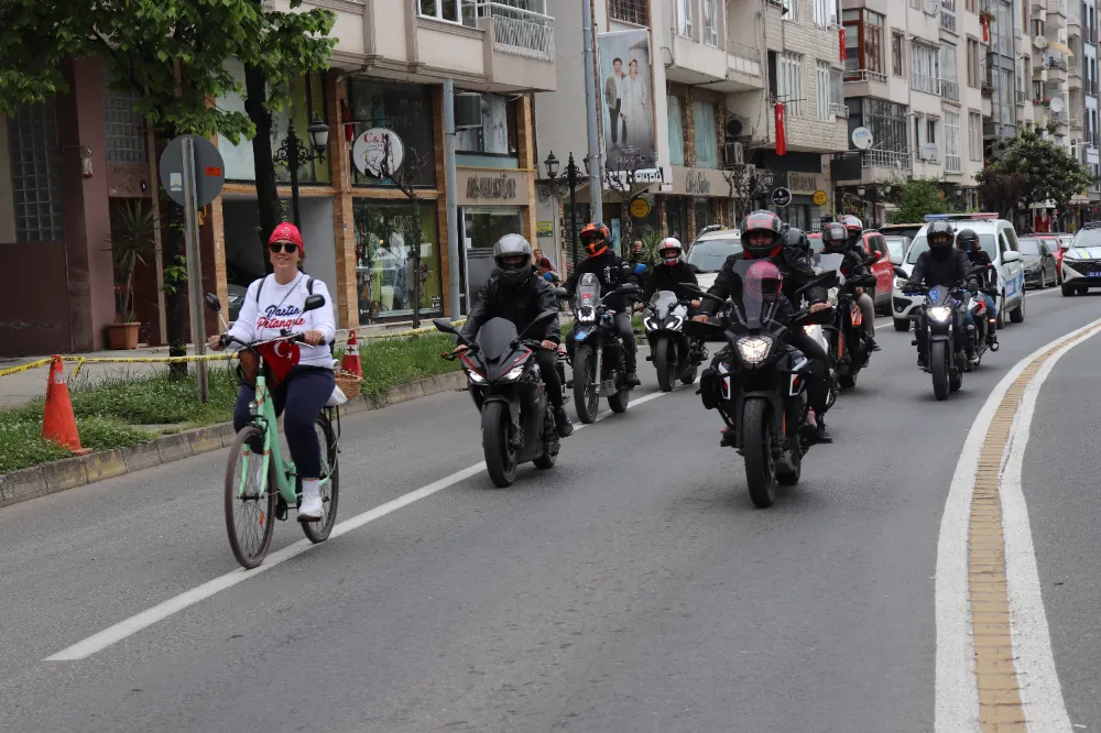Ayanikola mevkiinden başlayan kortej, Ünye Devlet Sahil Yolu üzerinden ilerleyerek Ünye Cumhuriyet Meydanı’nda sona erdi. Renkli görüntülerin oluştuğu etkinlikte, çok sayıda bisikletli ve motosikletli sürücü yer aldı.