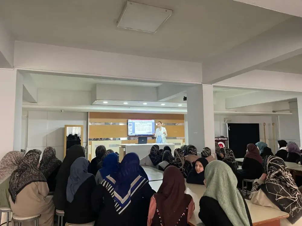 Bu kapsamda, Çınarlık Mahallesi’nde bulunan Merkez Yatılı Kız Kuran Kursu’nda eğitim gören öğrencilere yönelik kişisel hijyen ve adölesan (ergenlik) sağlığı konulu seminer gerçekleştirildi.