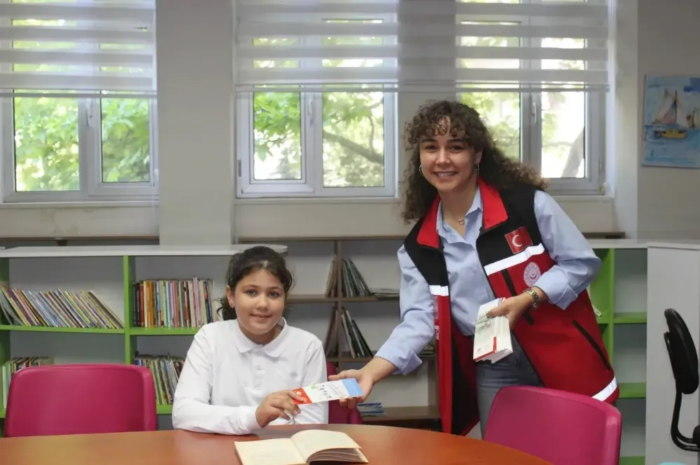 Bu kapsamda Ünye Halk Kütüphanesi ve ilçe genelindeki okullarda öğrencilere, aile temasıyla hazırlanan özel kitap ayraçları dağıtıldı.