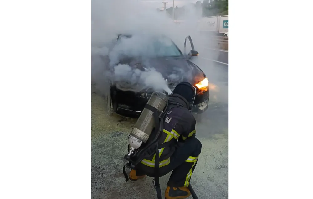 Sürücünün durumu fark etmesi üzerine olay itfaiyeye bildirildi.