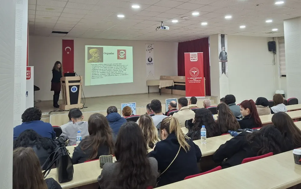 ODÜ Ünye İktisadi ve İdari Bilimler Fakültesi’nde düzenlenen “Sigara Kanser İlişkisi ve Kanserden Korunma” seminerinde, sigaranın kanser üzerindeki etkileri ve korunma yolları ele alındı, sigarayı bırakmaya yönelik bilgilendirme yapıldı.